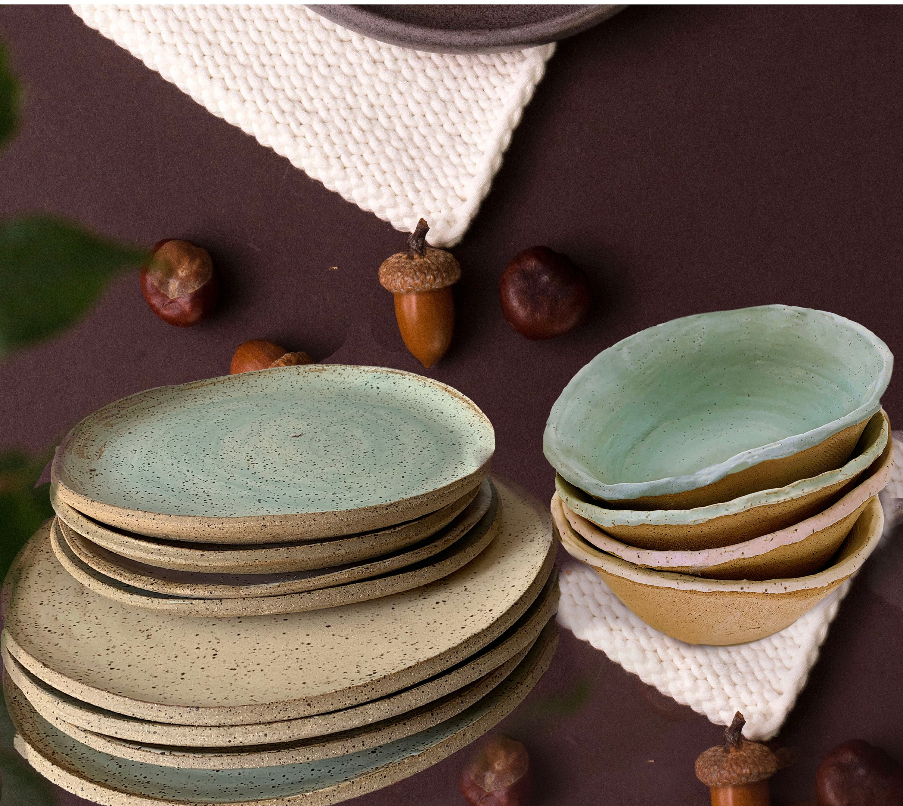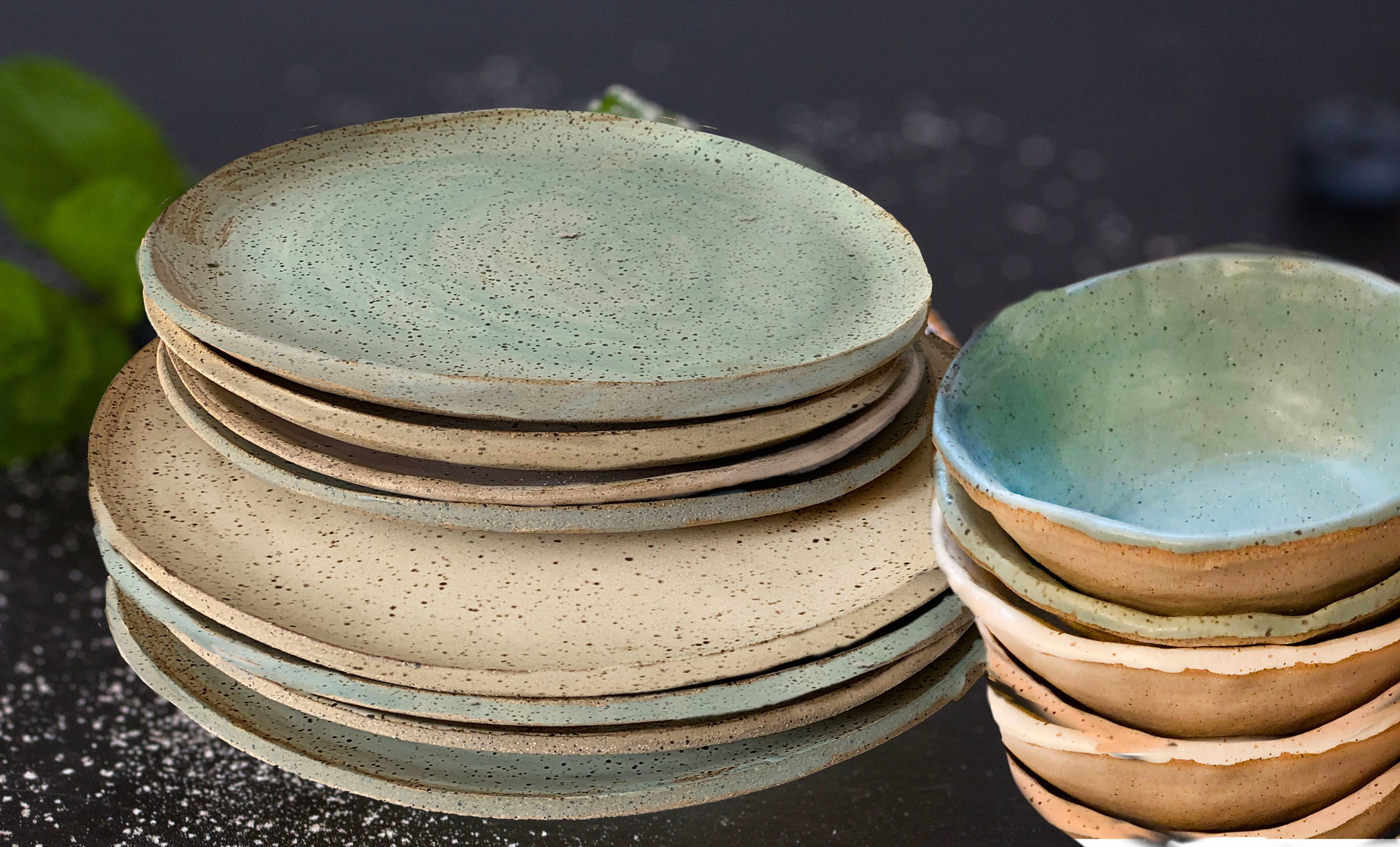 Please expect small variations in sizes and shapes among the platesh. I hand form each individually….they are handmade, and each one is unique. The custom glaze colors may also vary slightly.