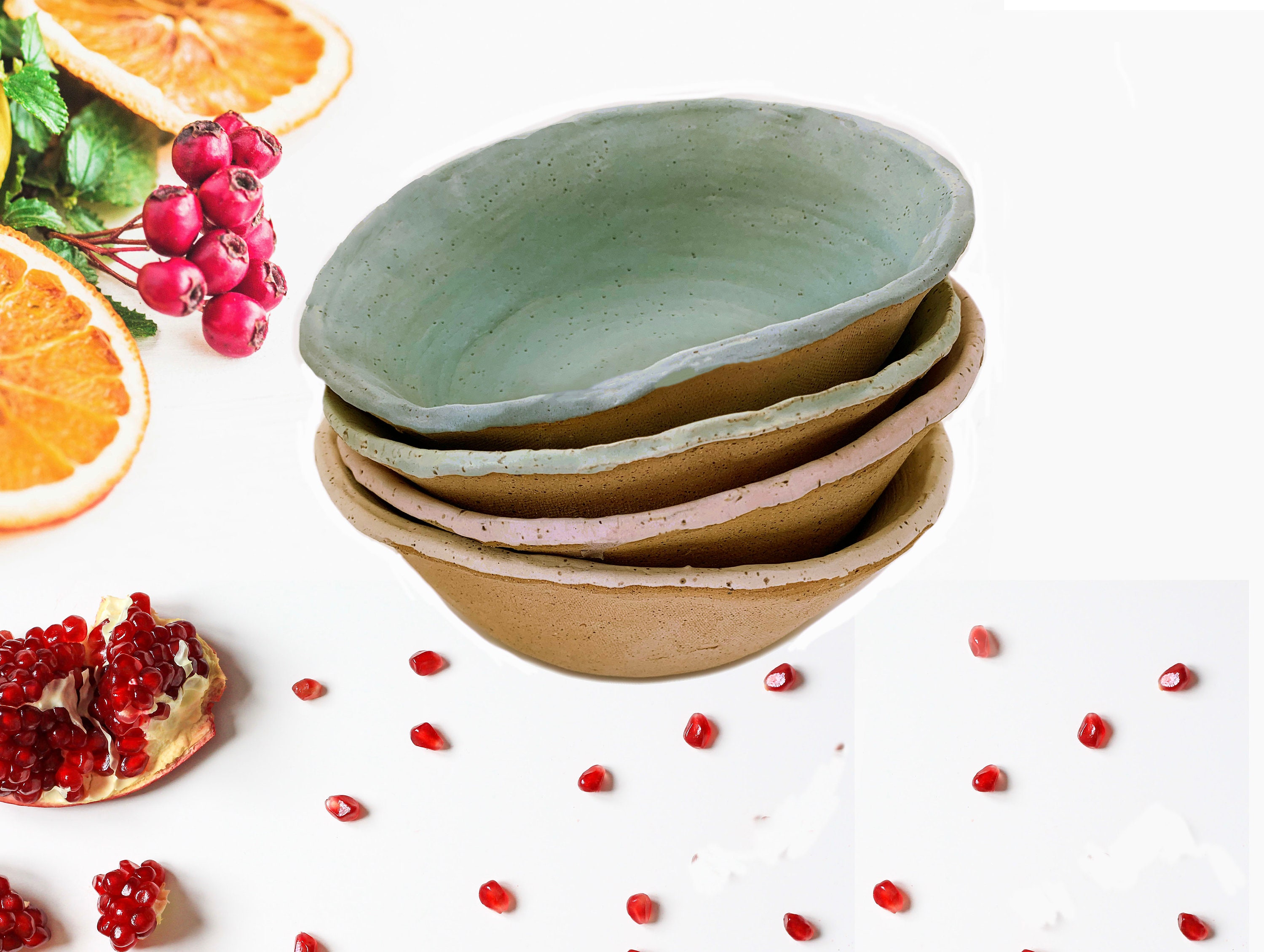 Beautifully rustic with natural stoneware unglazed bottoms.