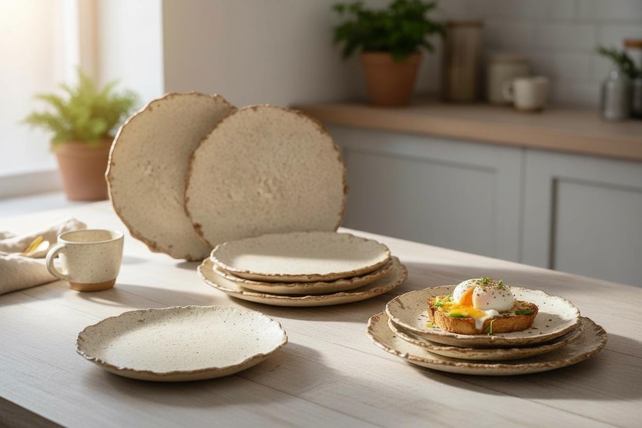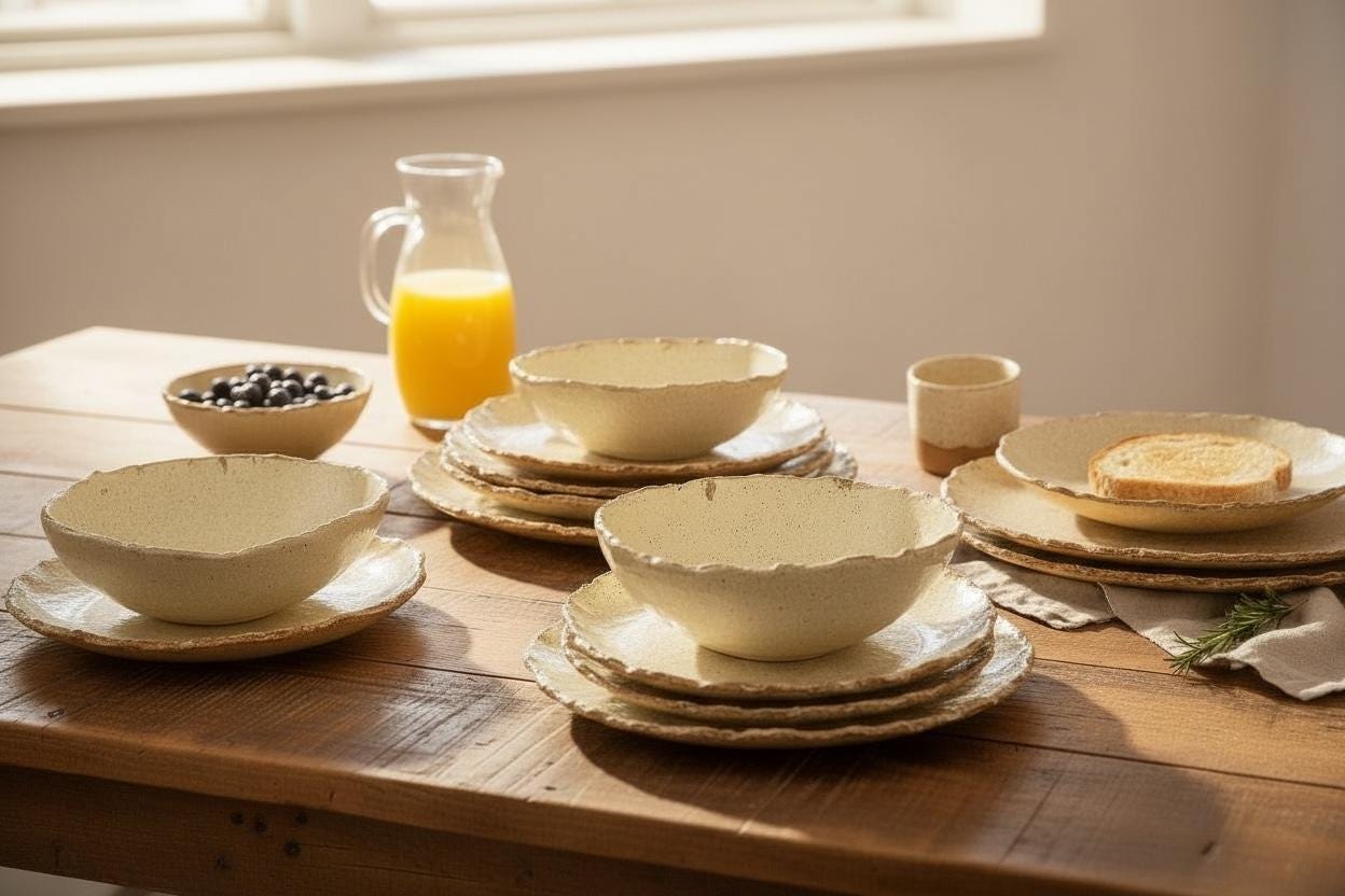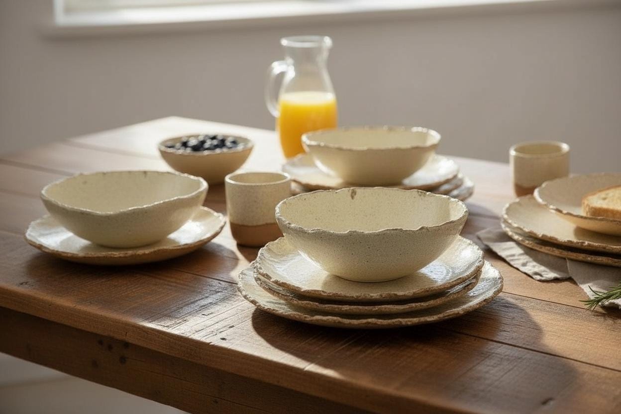 Beautifully rustic organic edge with natural stoneware unglazed bottoms.