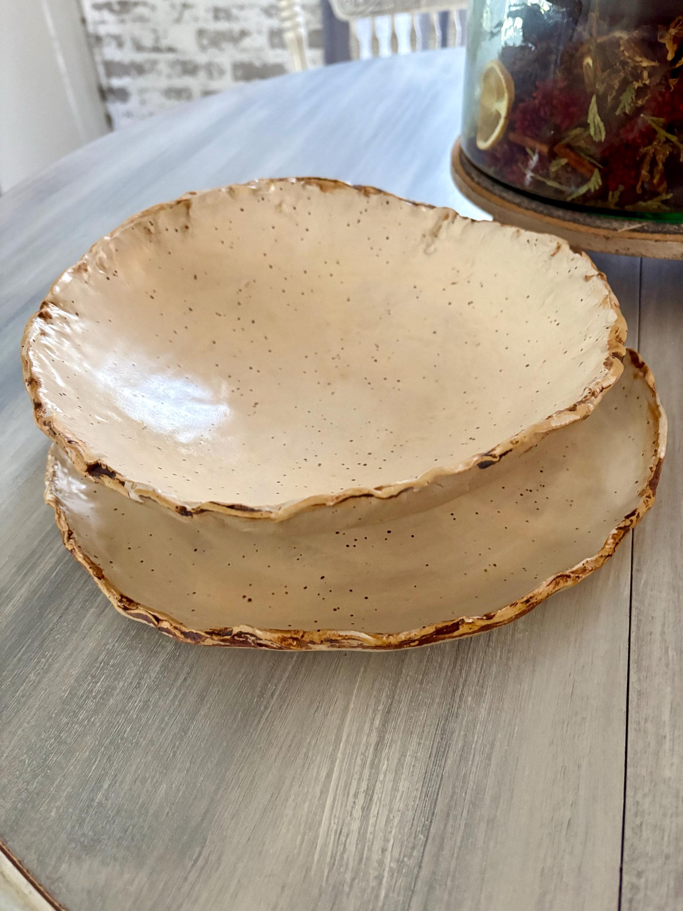 Rustic Pottery, Hand formed, custom glaze, farmhouse table, rustic tableware