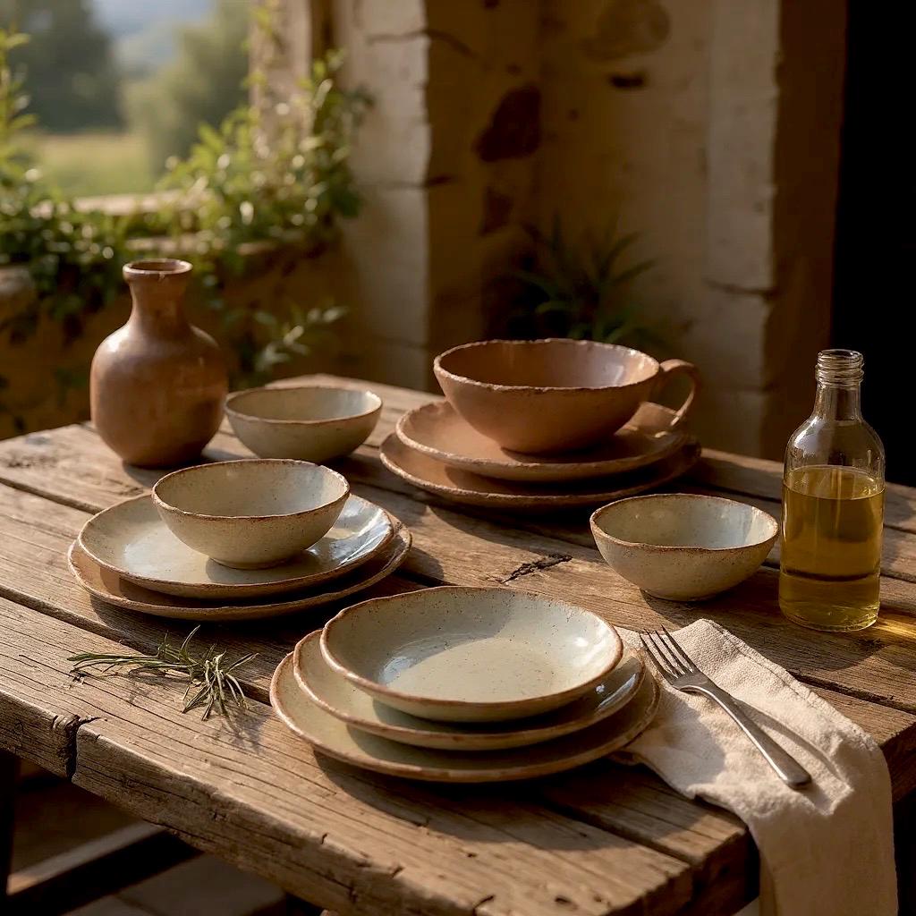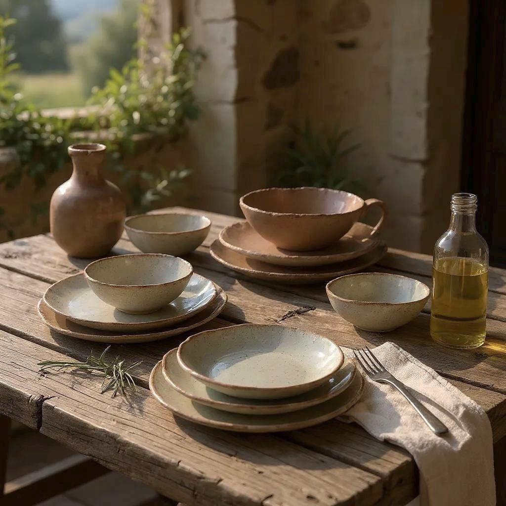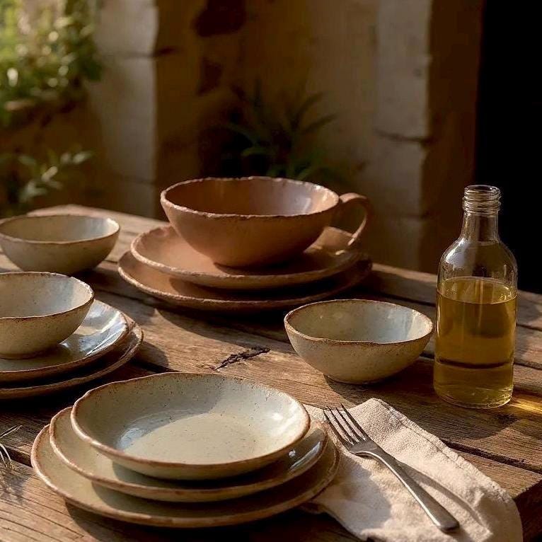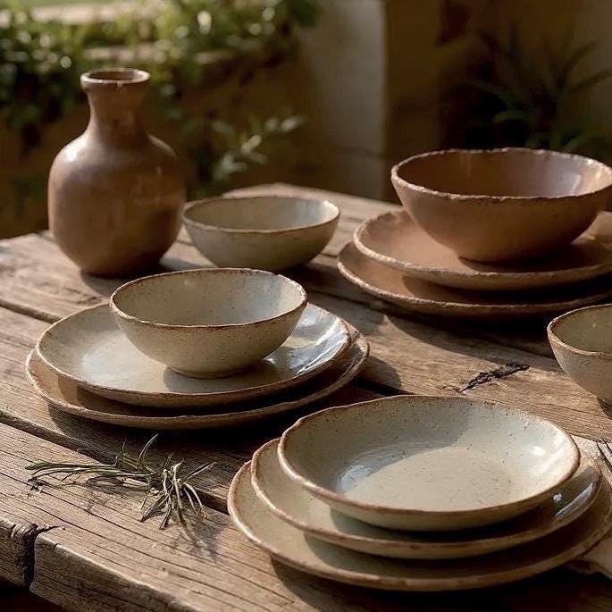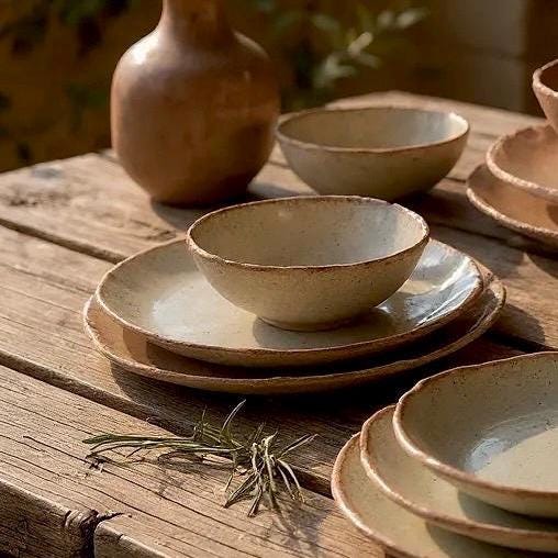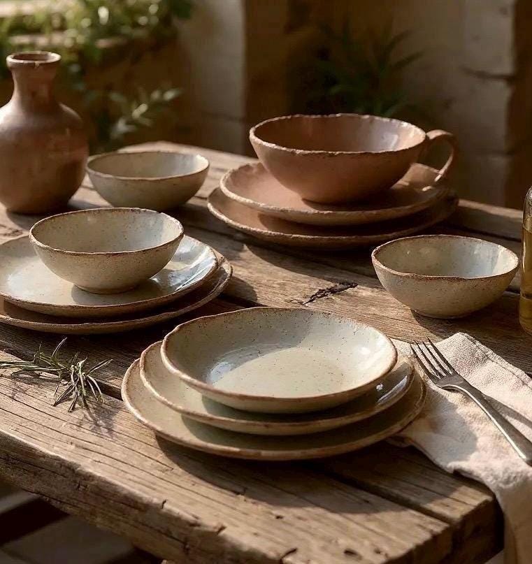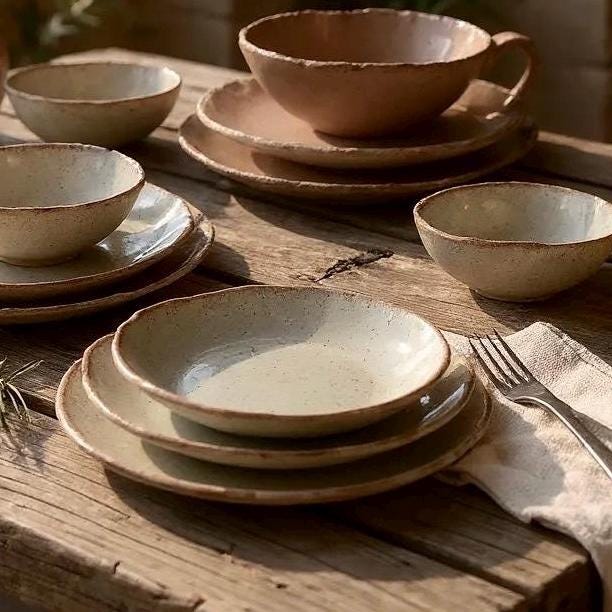 Beautifully rustic edge with natural stoneware unglazed bottoms.