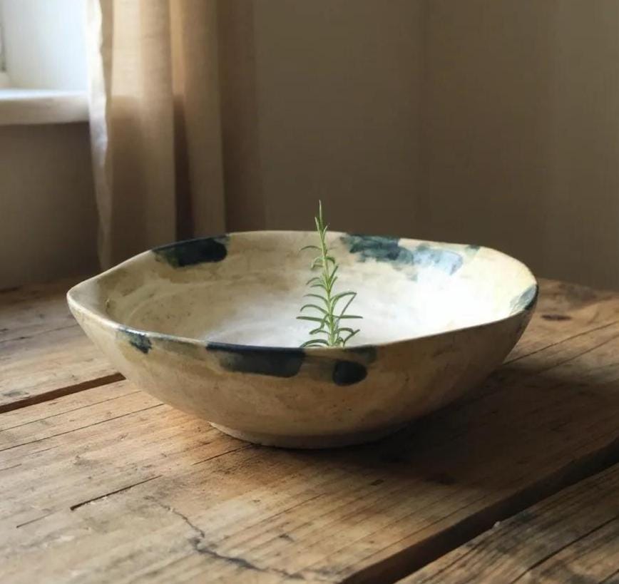 Rustic Pottery Serving Bowl, 9-10”, Hand formed, custom glaze, farmhouse table, rustic tableware