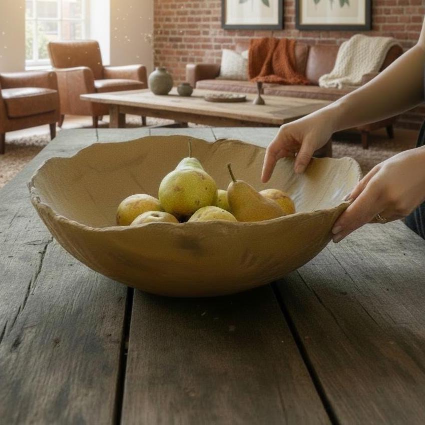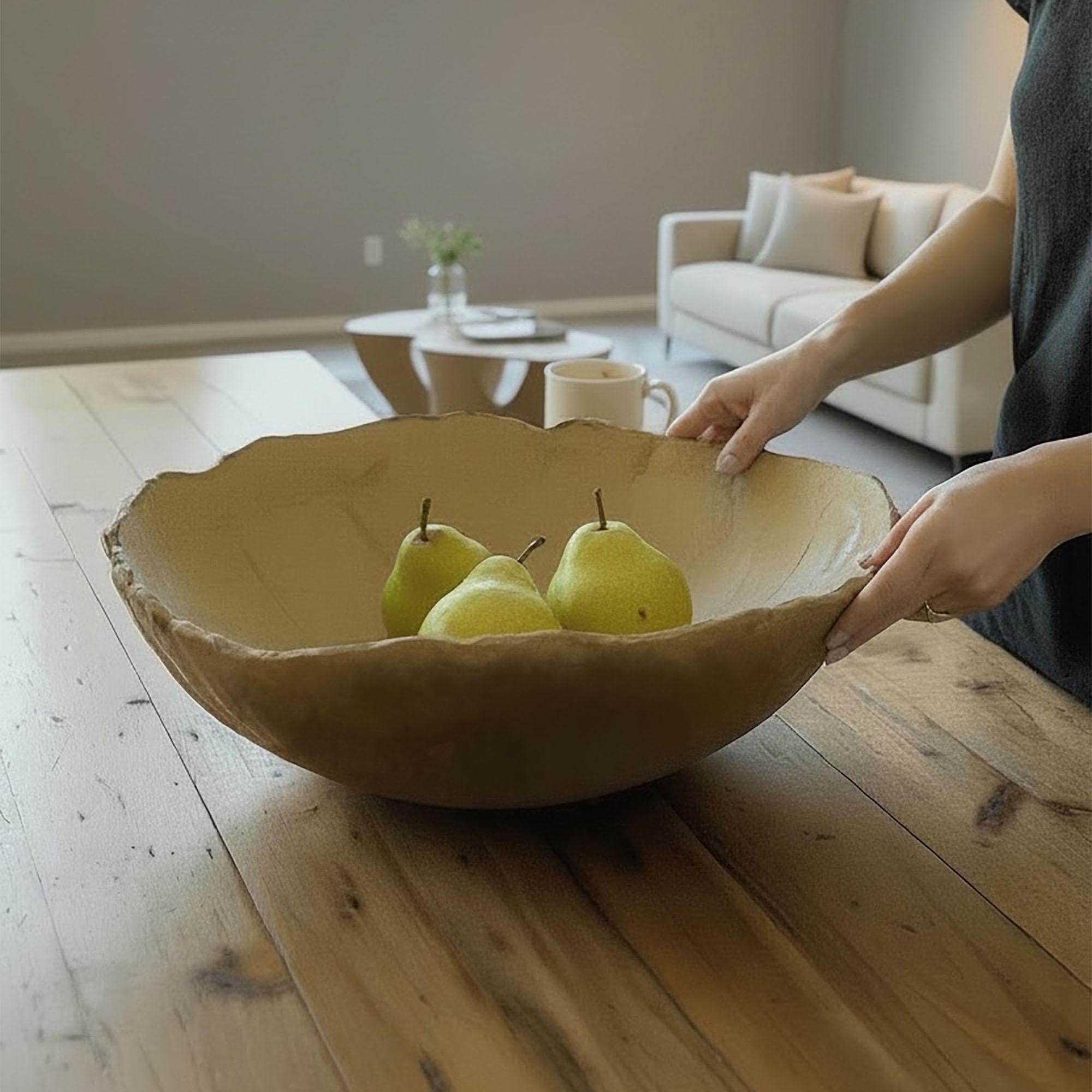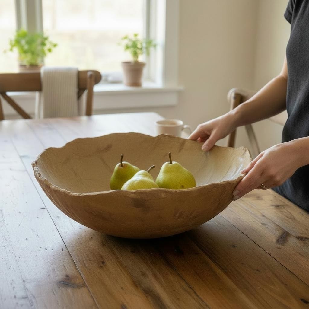 Rustic Pottery Serving Bowl, 12- 13 inches, 4-5 inches high, Hand formed, custom glaze, farmhouse table, rustic tableware