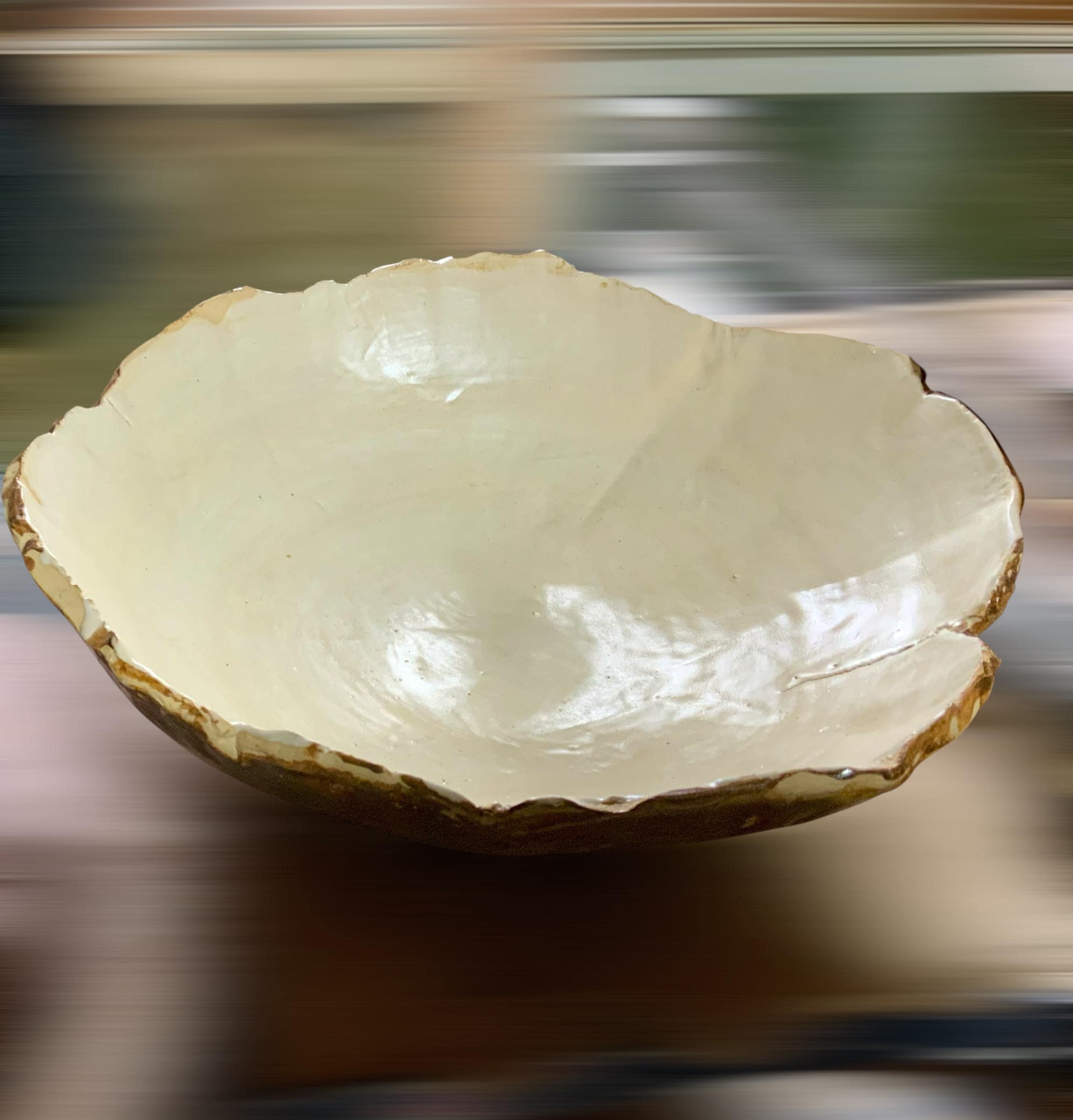 Rustic Pottery Serving/Fruit Bowl,approximatel-13 inches across, 4.5-5.5 inches tall