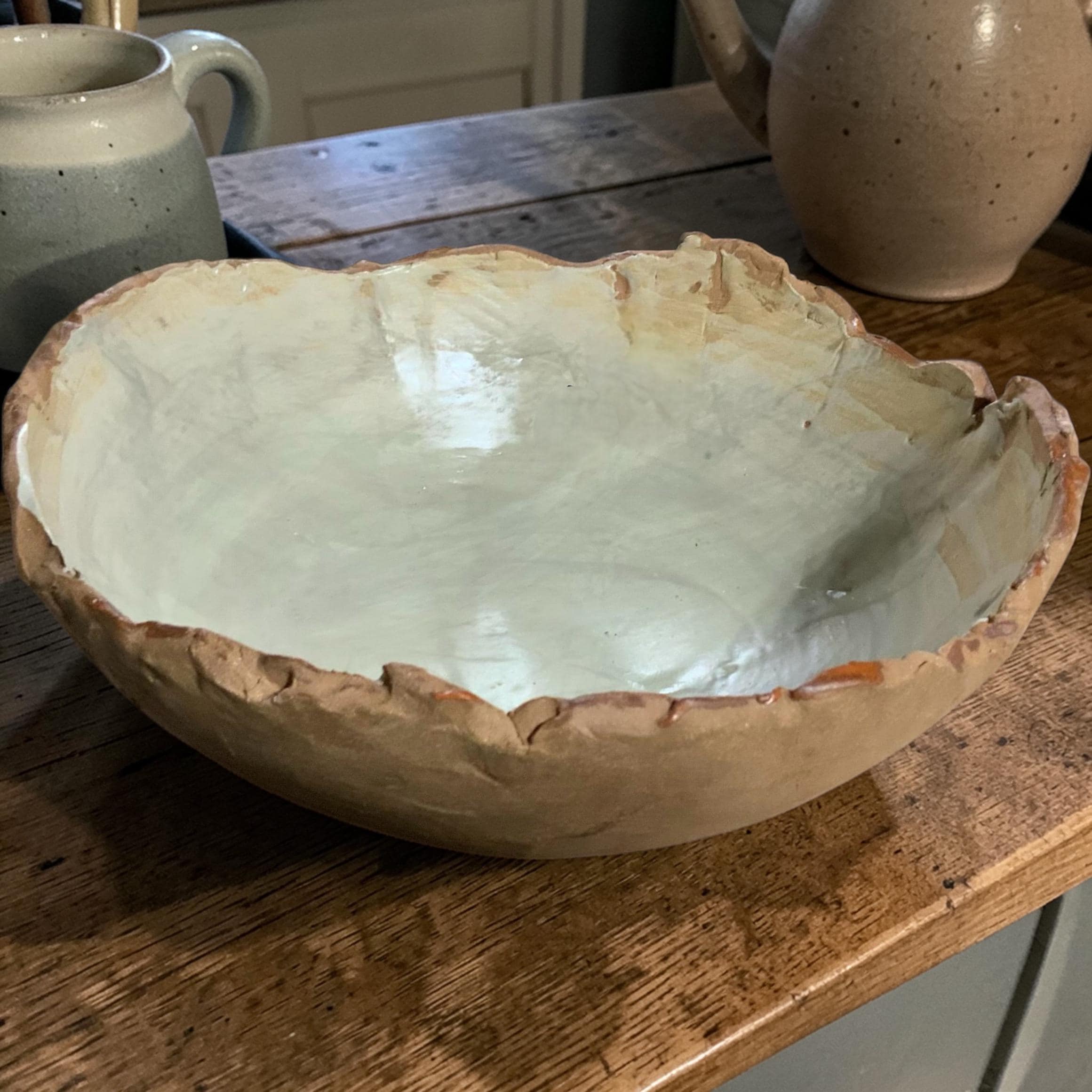 Interior is rustic, completely glazed and food safe.