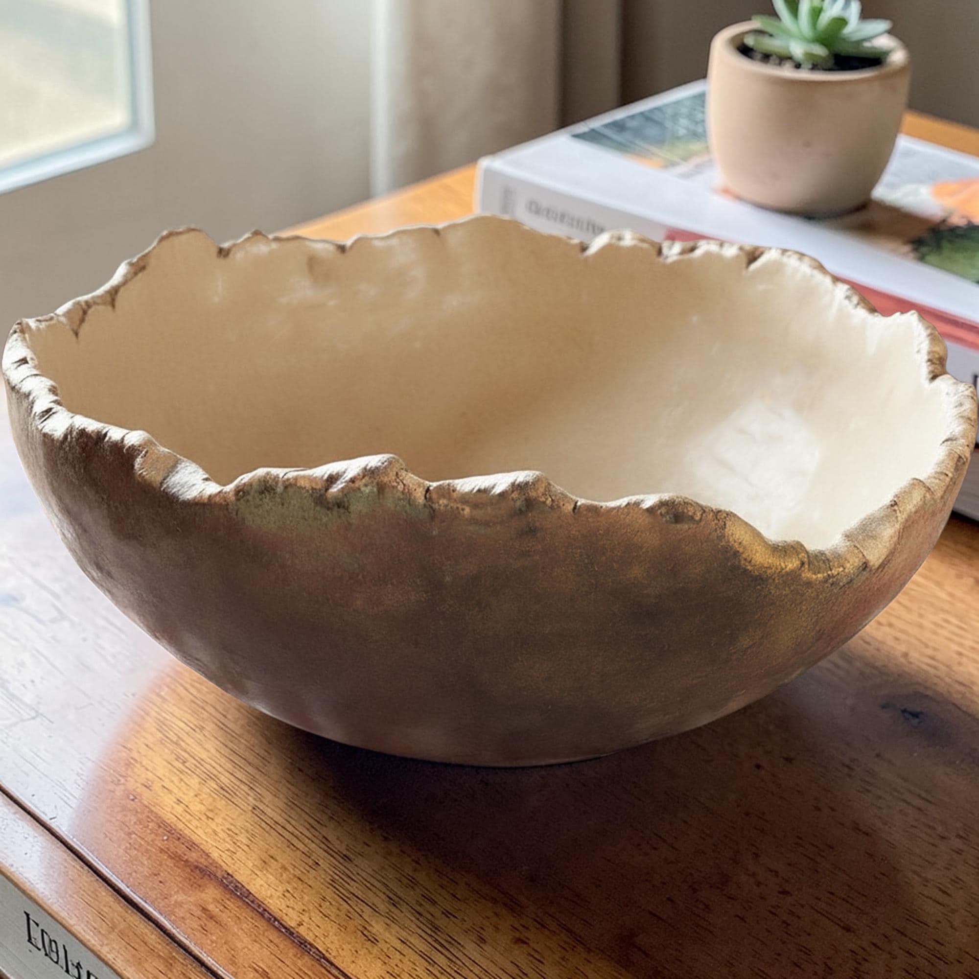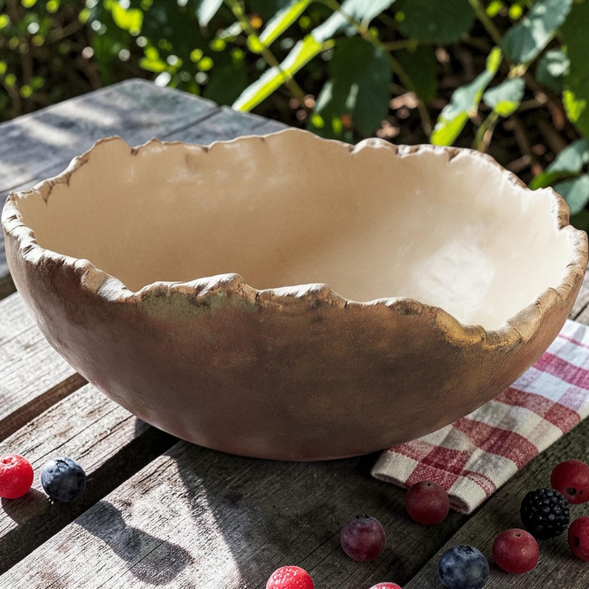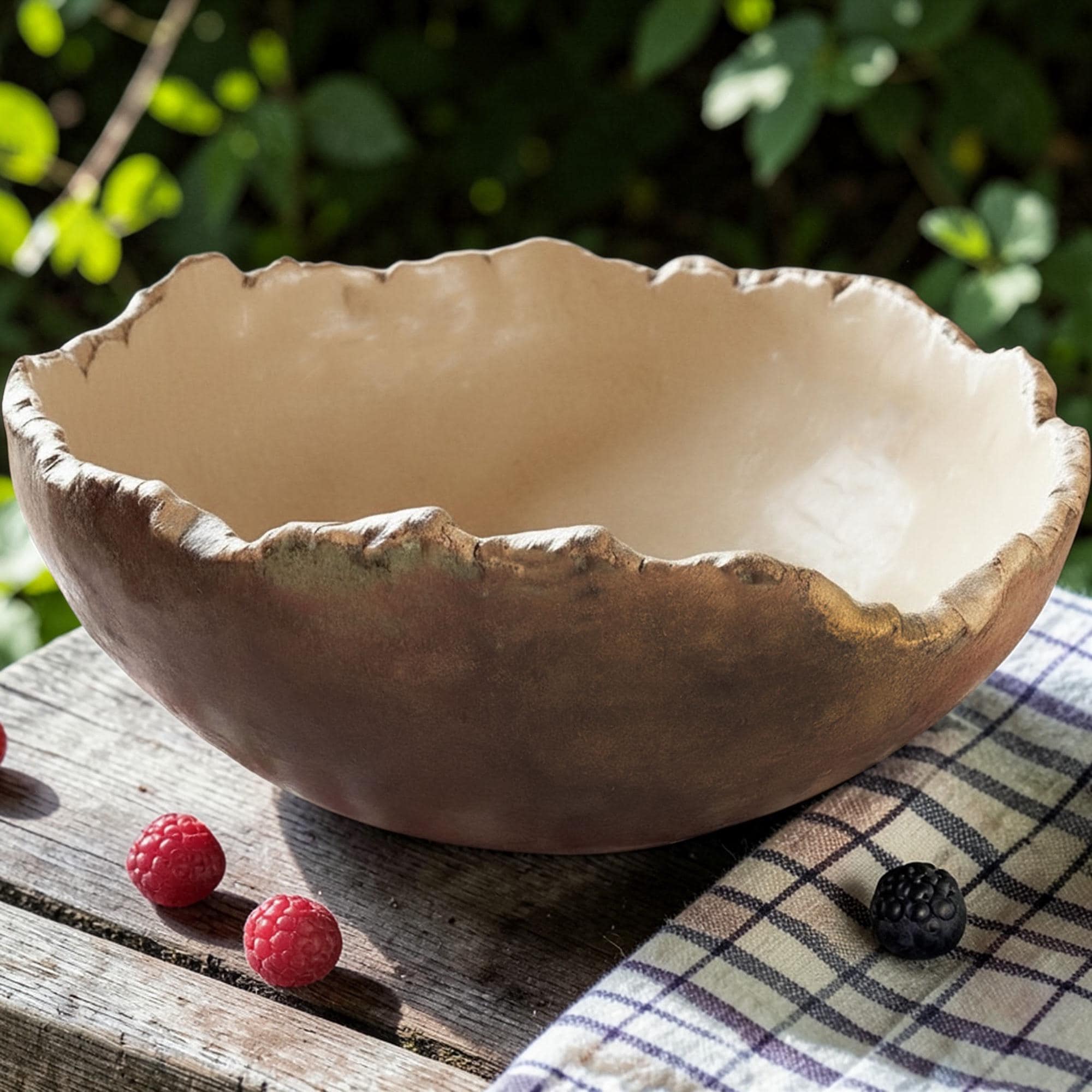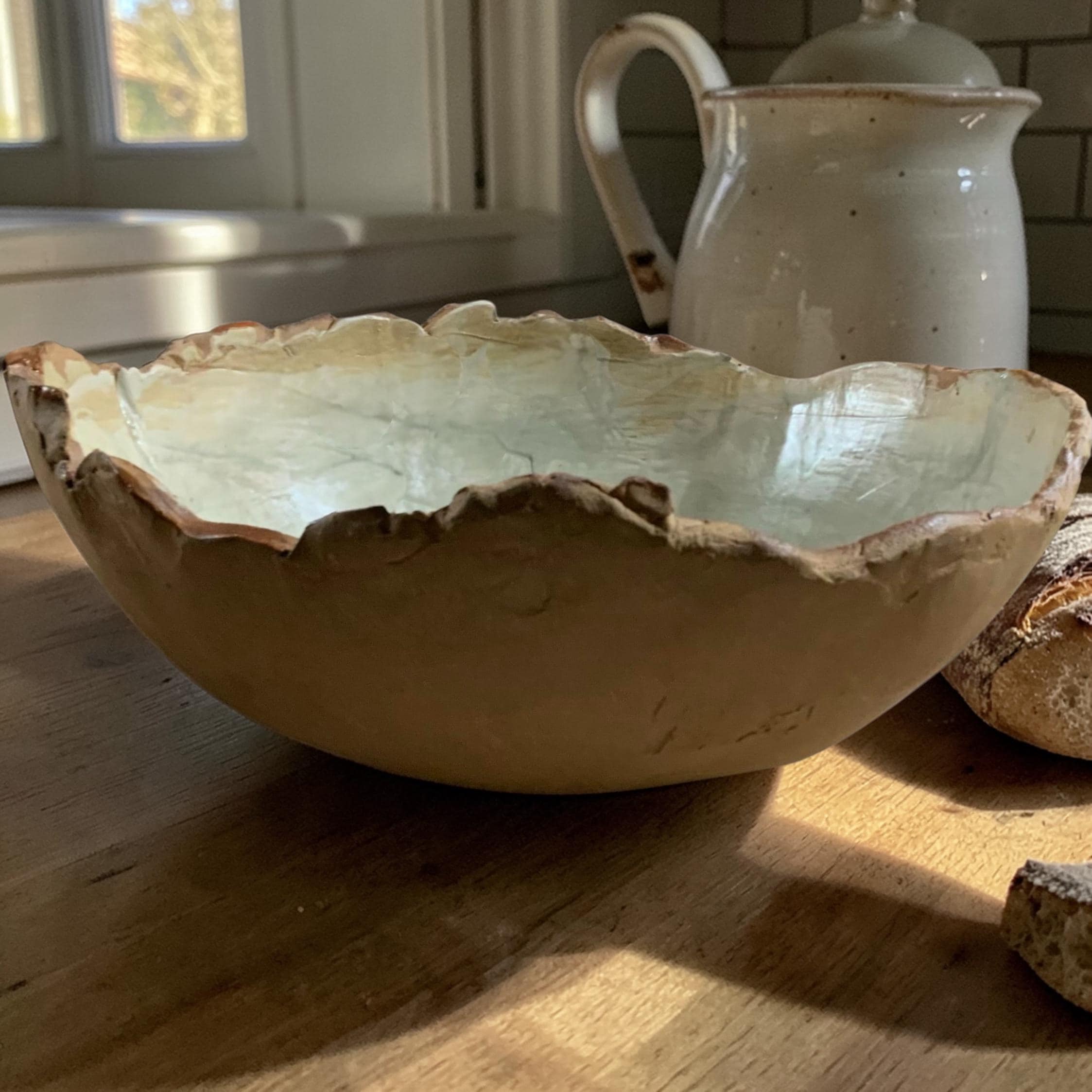 Delightfully gigantic “Craggy Bowl” is hand formed with custom, food-safe glazes