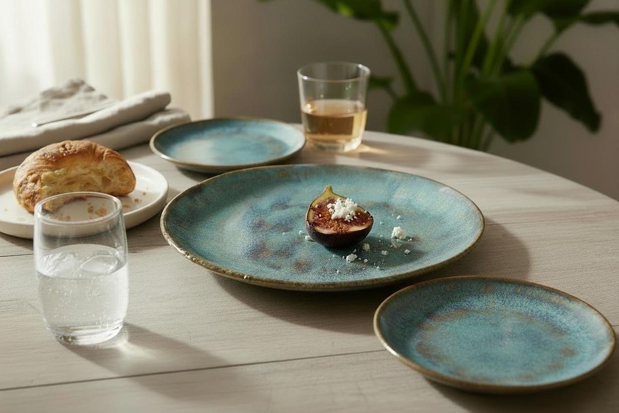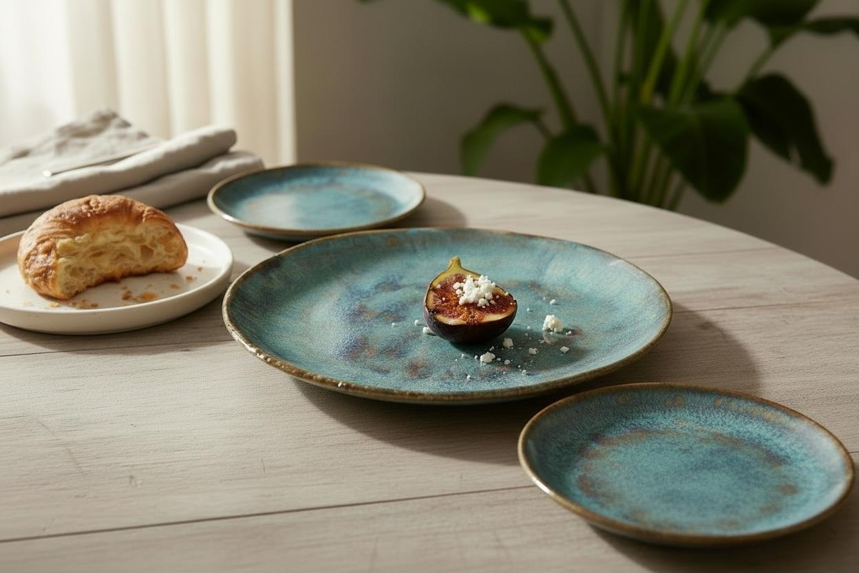 Please expect small variations in sizes and shapes among the platesh. I hand form each individually….they are handmade, and each one is unique. The custom glaze colors may also vary slightly.