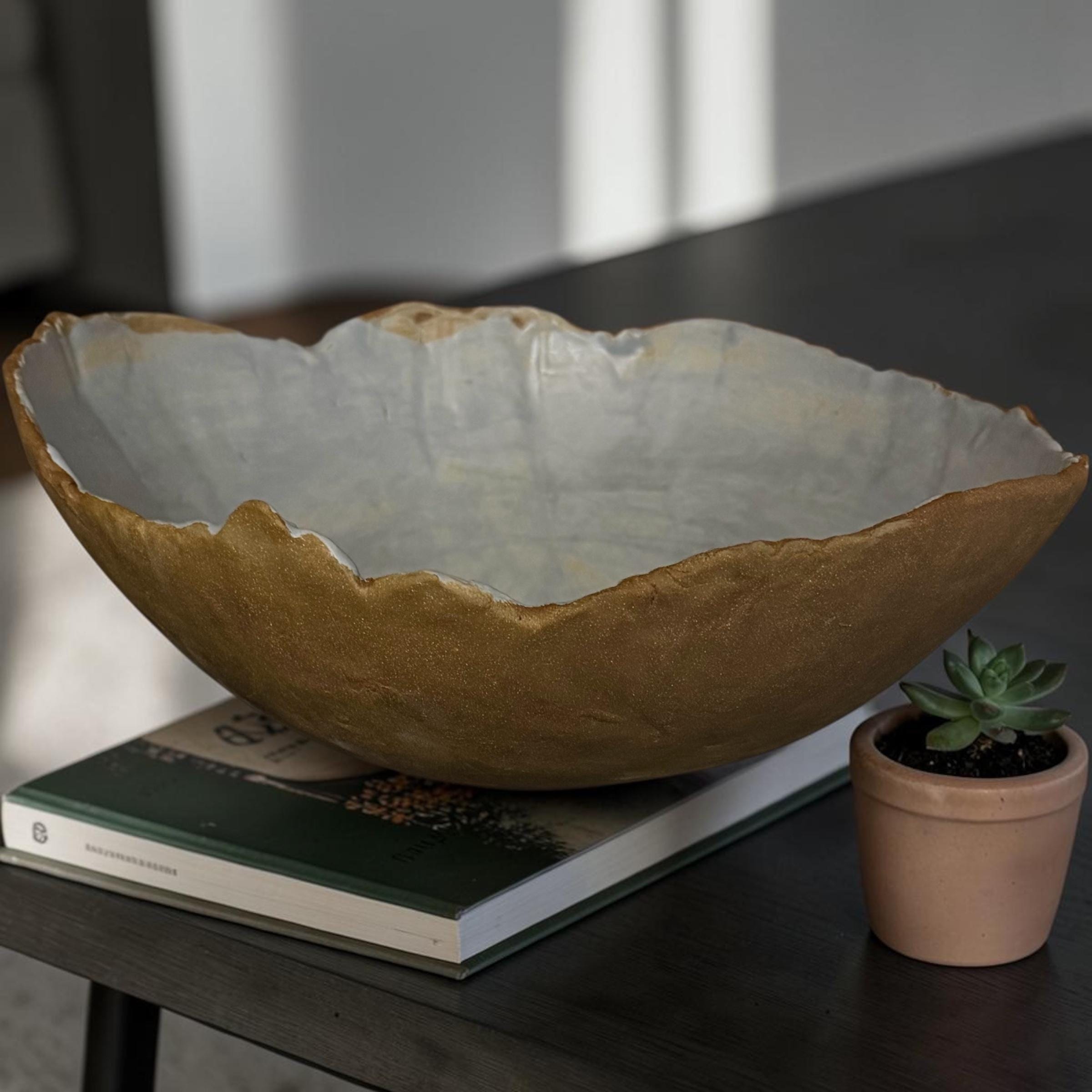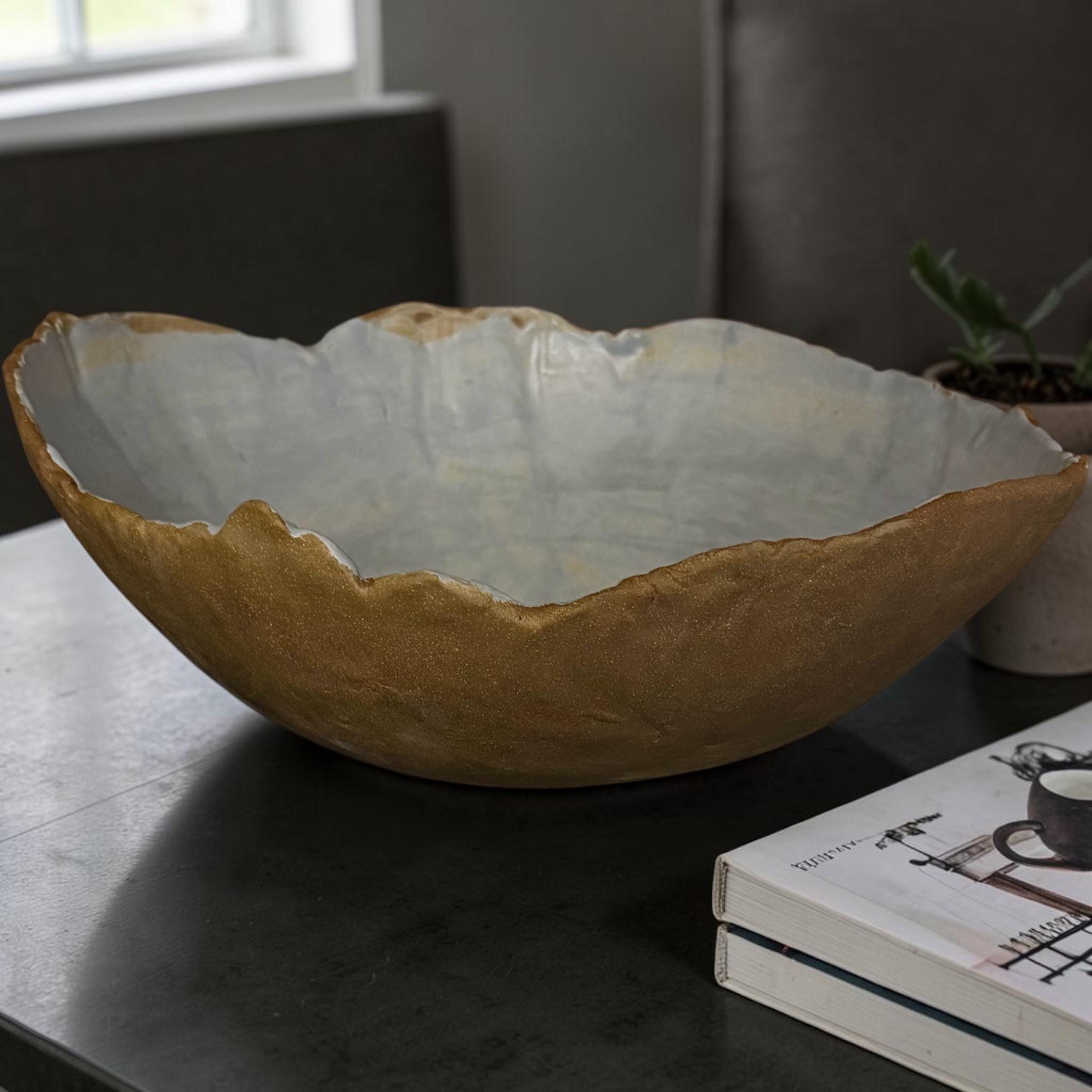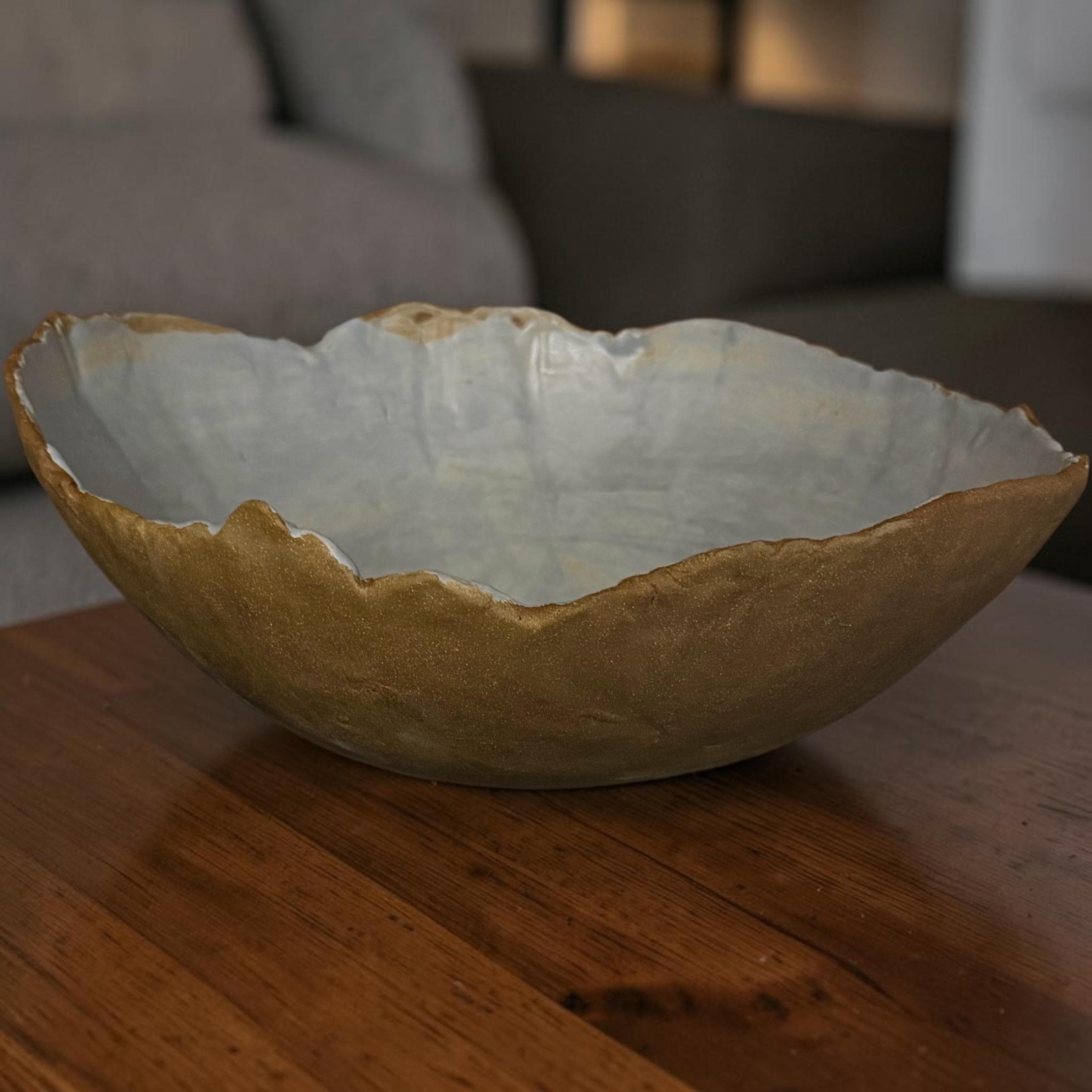 Delightfully gigantic “Craggy Bowl” is hand formed with custom, food-safe, no harmful chemicals glazed