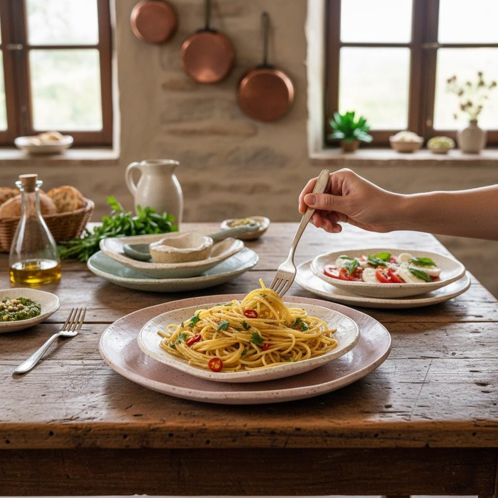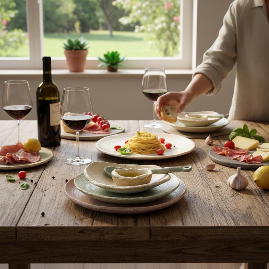 12 pieces will each be hand rolled, hand formed and custom glazed. Your dinnerware will be one-of-a-kind and sizes, shapes, and colors may vary slightly, but each piece is its own story.