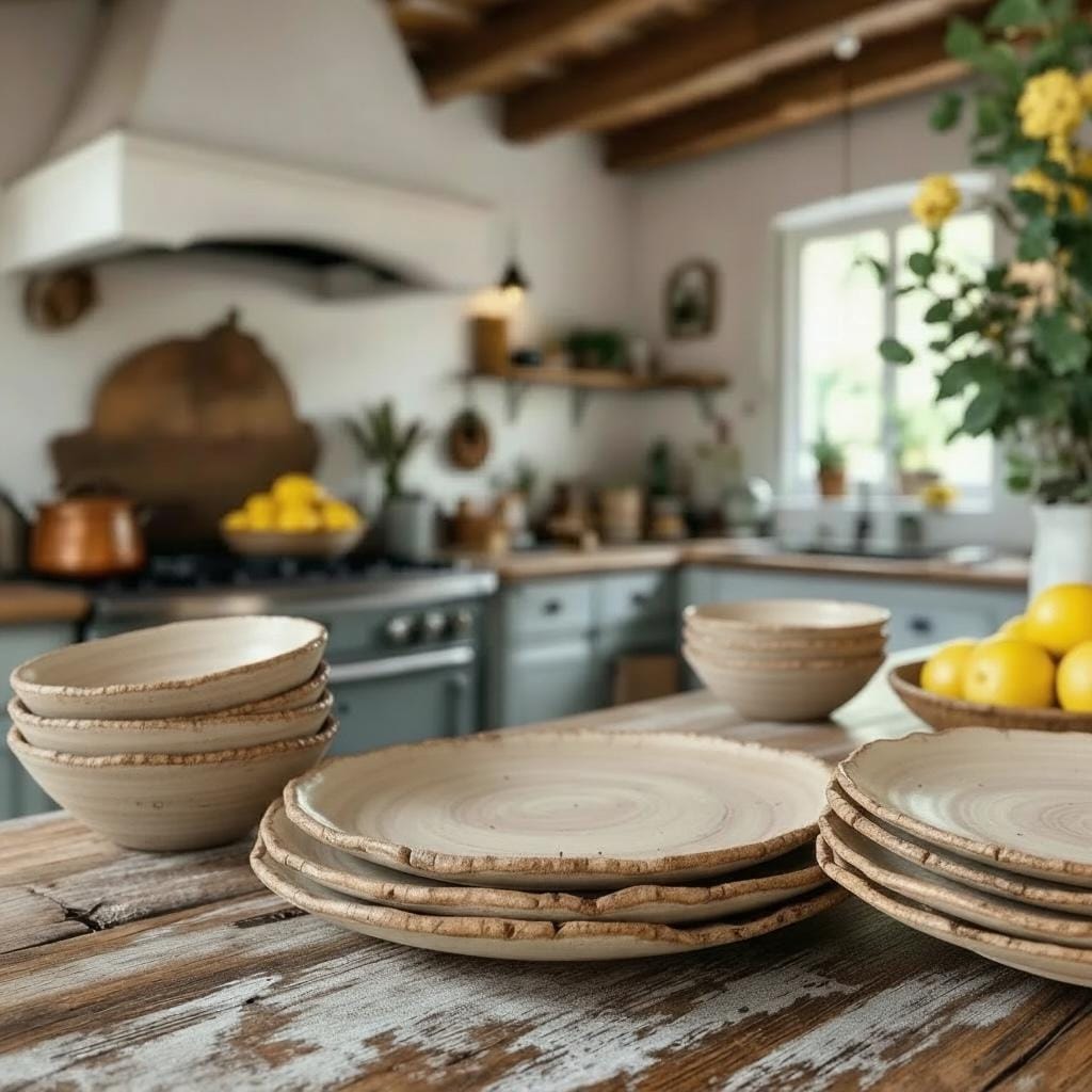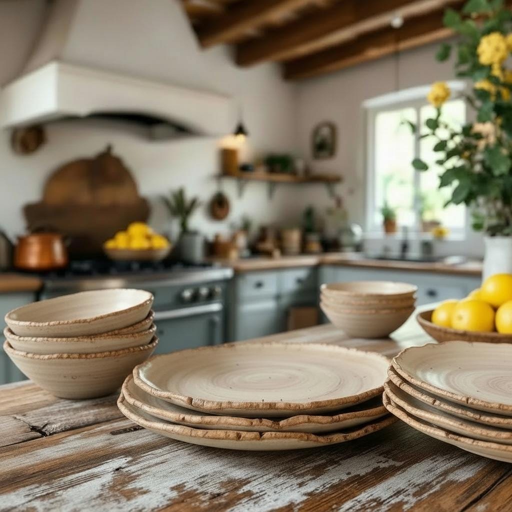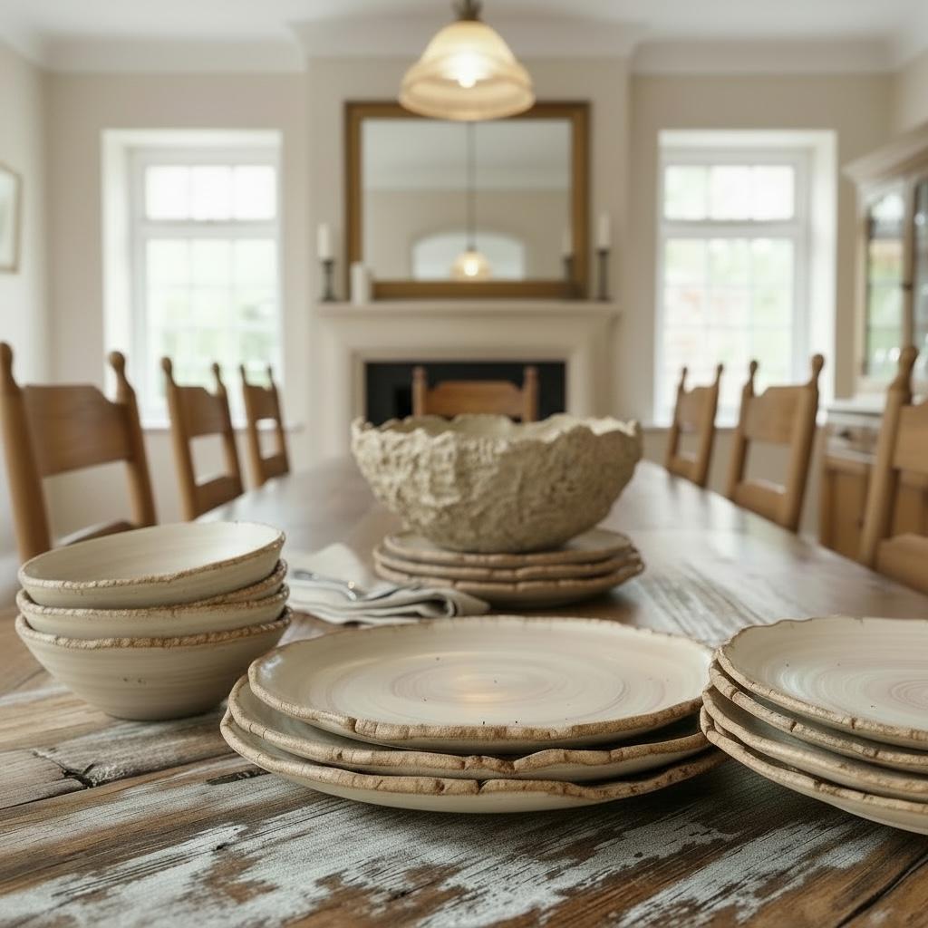 Beautifully rustic edge with natural stoneware unglazed bottoms.