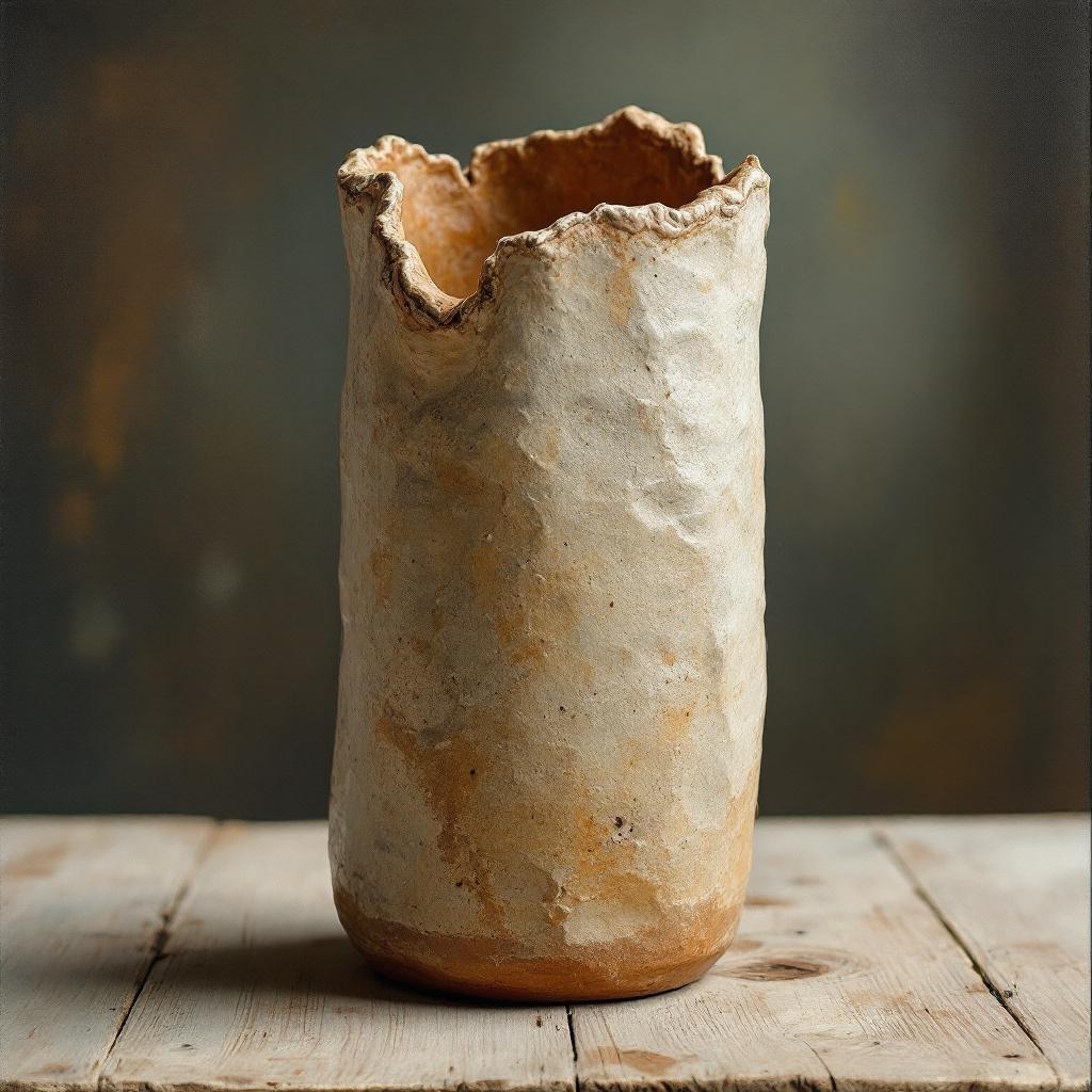 The interior is glazed in creamy, sand glaze, and the exterior is randomly unglazed to highlight the textures and movements of the clay. It is high fired and fully vitrified.